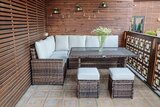Комплектация и габариты: Диван прямой - 171x71x81 см Диван угловой- 183x71x81 см Обеденный стол - 150x90x70 см Пуф (2 шт) - 40x40x33 см Подушки под спину(7 шт) - 53х48х22 см Подушки для сиденья(6 шт) - 60х10х56 см Подушка для сиденья на пуф(2 шт) - 40х10х40 Материалы: Материал комплекта - искусственный ротанг (ручного плетения) Материал каркаса - сталь, окрашенная порошковым методом Материал столешницы - закаленное стекло Материал чехла на подушки - олефин (водоотталкивающая ткань) Материал наполнителя подушек под спину - синтетический пух Материал наполнителя подушек для сидения - поролон Цвет комплекта - Коричневый Цвет подушек - Бежевые Дополнительная информация: Количество посадочных мест – 6-8 человек Максимальная нагрузка на посадочное место - 150 кг Чехлы съемные - да Температурный режим - от -50?C до +50?C Сочетается с комплектами бренда ROYAL FAMILY - ZOYA, KARL, GRAND VICKY, FIONA, VIOLETTA в коричневом цвете Накладки на ножки - да (пластиковые) Категория ротанга - первичная Держатели и крепления подушек зависят от поставки и не являются неотъемлемой частью комплекта Гарантия и эксплуатация: Гарантийный срок - 1 год Эксплуатационный срок - 10 лет Страна производитель - КитайХарактеристики