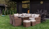 Комплектация и габариты: Диван прямой - 171x71x81 см Диван угловой- 183x71x81 см Кресло(2 шт) - 58x60x89 см Обеденный стол - 150x90x70 см Пуф (2 шт) - 40x40x33 см Материалы: Материал комплекта - искусственный ротанг (ручного плетения) Материал каркаса – сталь/алюминий, окрашенный порошковым методом Материал столешницы - закаленное стекло Материал чехла на подушки - олефин (водоотталкивающая ткань) Материал наполнителя подушек под спину - синтетический пух Материал наполнителя подушек для сидения - поролон Цвет комплекта - Коричневый Цвет подушек - Бежевые Дополнительная информация: Количество посадочных мест – 8-10 человек Максимальная нагрузка на посадочное место - 150 кг Чехлы съемные - да Температурный режим - от -50?C до +50?C Сочетается с комплектами бренда ROYAL FAMILY - ZOYA, KARL, GRAND VICKY, FIONA, VIOLETTA в коричневом цвете Накладки на ножки - да (пластиковые) Категория ротанга - первичная Держатели и крепления подушек зависят от поставки и не являются неотъемлемой частью комплекта Гарантия и эксплуатация: Гарантийный срок - 1 год Эксплуатационный срок - 10 лет Страна производитель - КитайХарактеристики