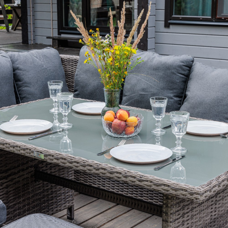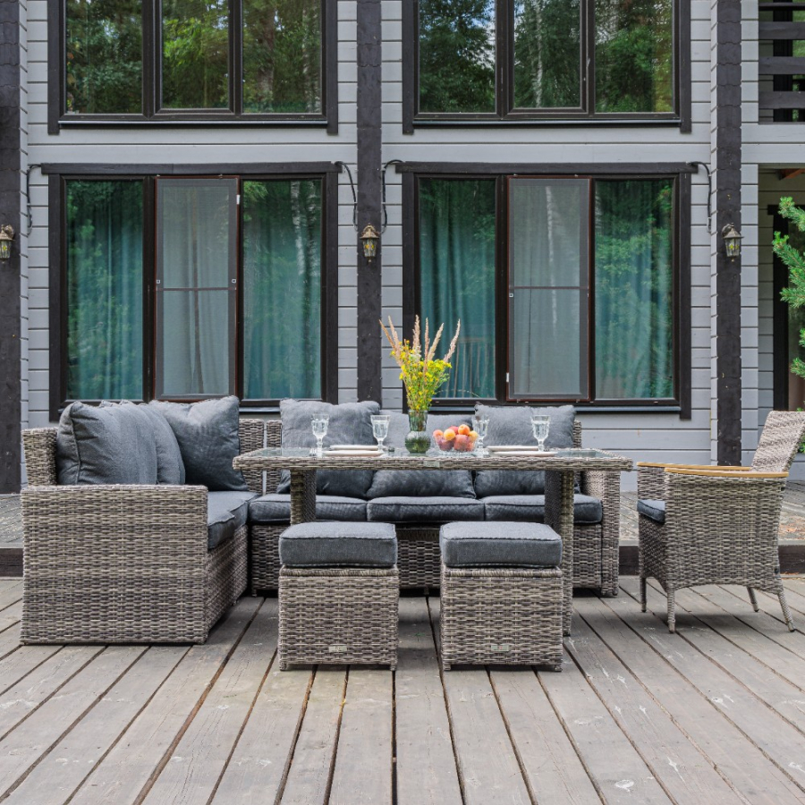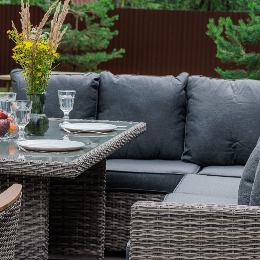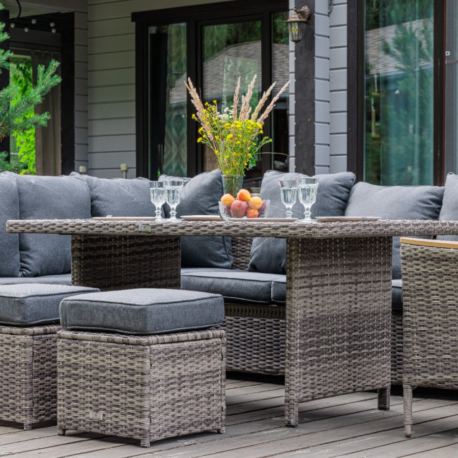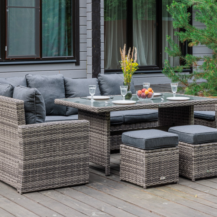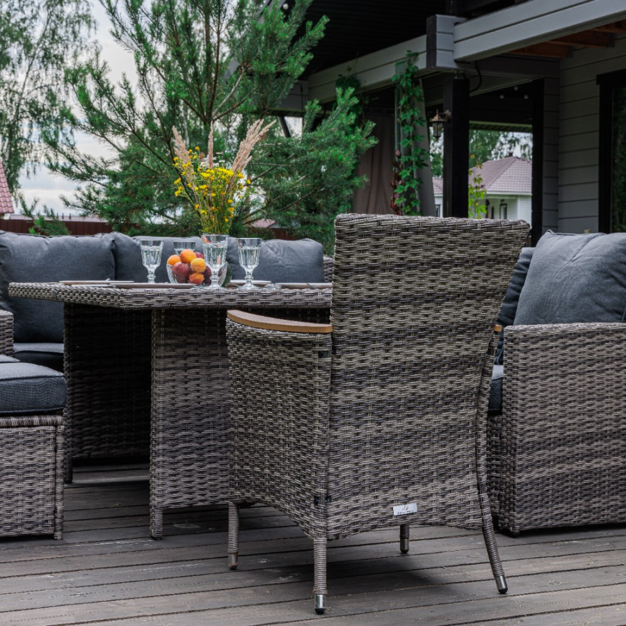 Комплектация и габариты: Диван прямой - 171x71x81 см Диван угловой- 183x71x81 см Кресло - 60х59х87 см Обеденный стол - 150x90x70 см Пуф (2 шт) - 40x40x33 см Подушки под спину (7 шт) - 53х48х22 см Подушки для сиденья (6 шт) - 60х10х56 см Подушки для сиденья на кресло (1 шт) 47х7х44 см Подушка для сиденья на пуф (2 шт) - 40х10х40 см Материалы: Материал комплекта - искусственный ротанг (ручного плетения) Материал каркаса – сталь, окрашенная порошковым методом Материал столешницы - закаленное стекло Материал подлокотников кресла - поливуд (искуссвенное дерево) Материал чехла на подушки - олефин (водоотталкивающая ткань) Материал наполнителя подушек под спину - синтетический пух Материал наполнителя подушек для сидения - поролон Цвет комплекта - Серый Цвет подушек - Серый Дополнительная информация: Количество посадочных мест – 8-10 человек Максимальная нагрузка на посадочное место - 150 кг Чехлы съемные - да Температурный режим - от -50?C до +50?C Сочетается с комплектами бренда ROYAL FAMILY - GENRY, ZOYA, KARL, GRAND VICKY, FIONA, VIOLETTA в сером цвете Накладки на ножки - да (пластиковые) Категория ротанга - первичная Держатели и крепления подушек зависят от поставки и не являются неотъемлемой частью комплекта Гарантия и эксплуатация: Гарантийный срок - 1 год Эксплуатационный срок - 10 лет Страна производитель - КитайХарактеристики