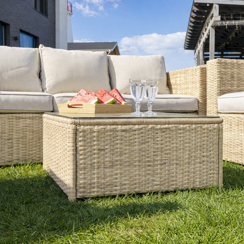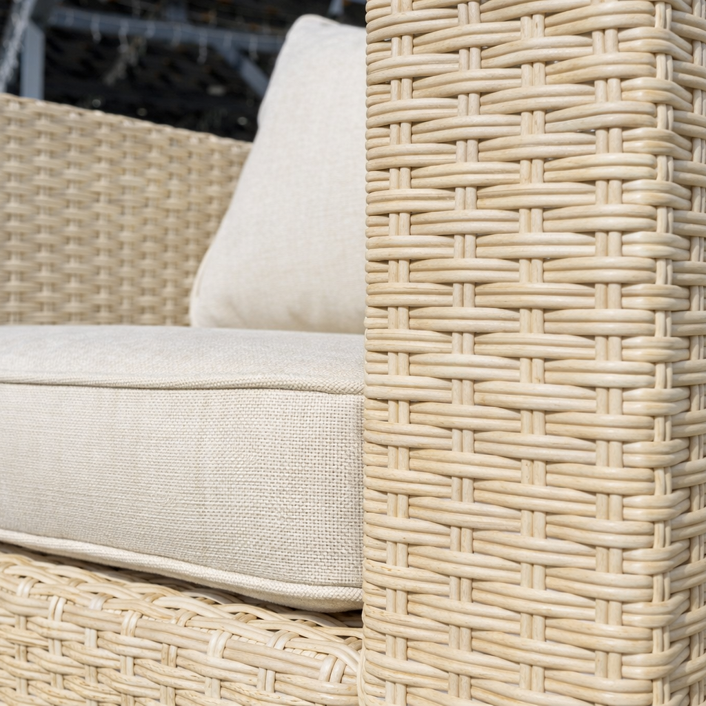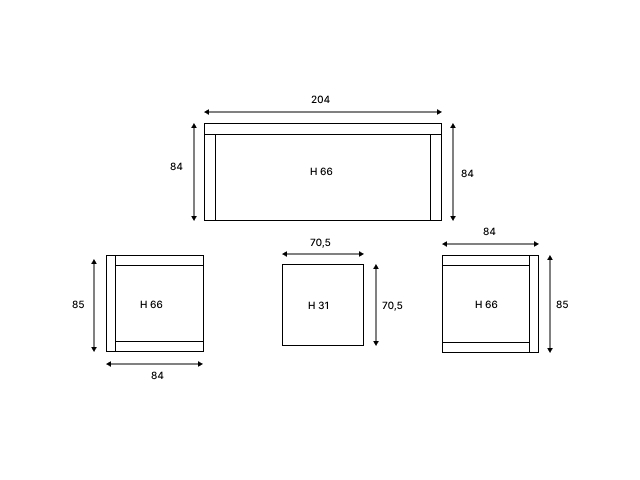 Комплектация и габариты: Диван трехместный - 204х84х66 см Кресла ( 2 шт) - 85х84х66 см Журнальный столик - 70,5х70,5х31 см Подушки под спину (5 шт) - 60х40х23 см Подушки для сиденья (5 шт) - 73х10х60 см Материалы: Материал комплекта - искусственный ротанг (ручного плетения) Материал каркаса – сталь, окрашенная порошковым методом Материал столешницы - закаленное стекло Материал чехла на подушки - олефин (водоотталкивающая ткань) Материал наполнителя подушек под спину - синтетический пух Материал наполнителя подушек для сидения - поролон Цвет комплекта - Бежевый Цвет подушек - Кремовые Дополнительная информация: Количество посадочных мест – 5 человек Максимальная нагрузка на посадочное место - 150 кг Чехлы съемные - да Температурный режим - от -50॰C до +50॰C Сочетается с комплектами бренда ROYAL FAMILY - ZOYA, ZORRO, GRAND VICKY, FIONA, VIOLETTA в сером цвете Накладки на ножки - да (пластиковые) Категория ротанга - первичная Держатели и крепления подушек зависят от поставки и не являются неотъемлемой частью комплекта Гарантия и эксплуатация: Гарантийный срок - 1 год Эксплуатационный срок - 10 лет Страна производитель - КитайХарактеристики