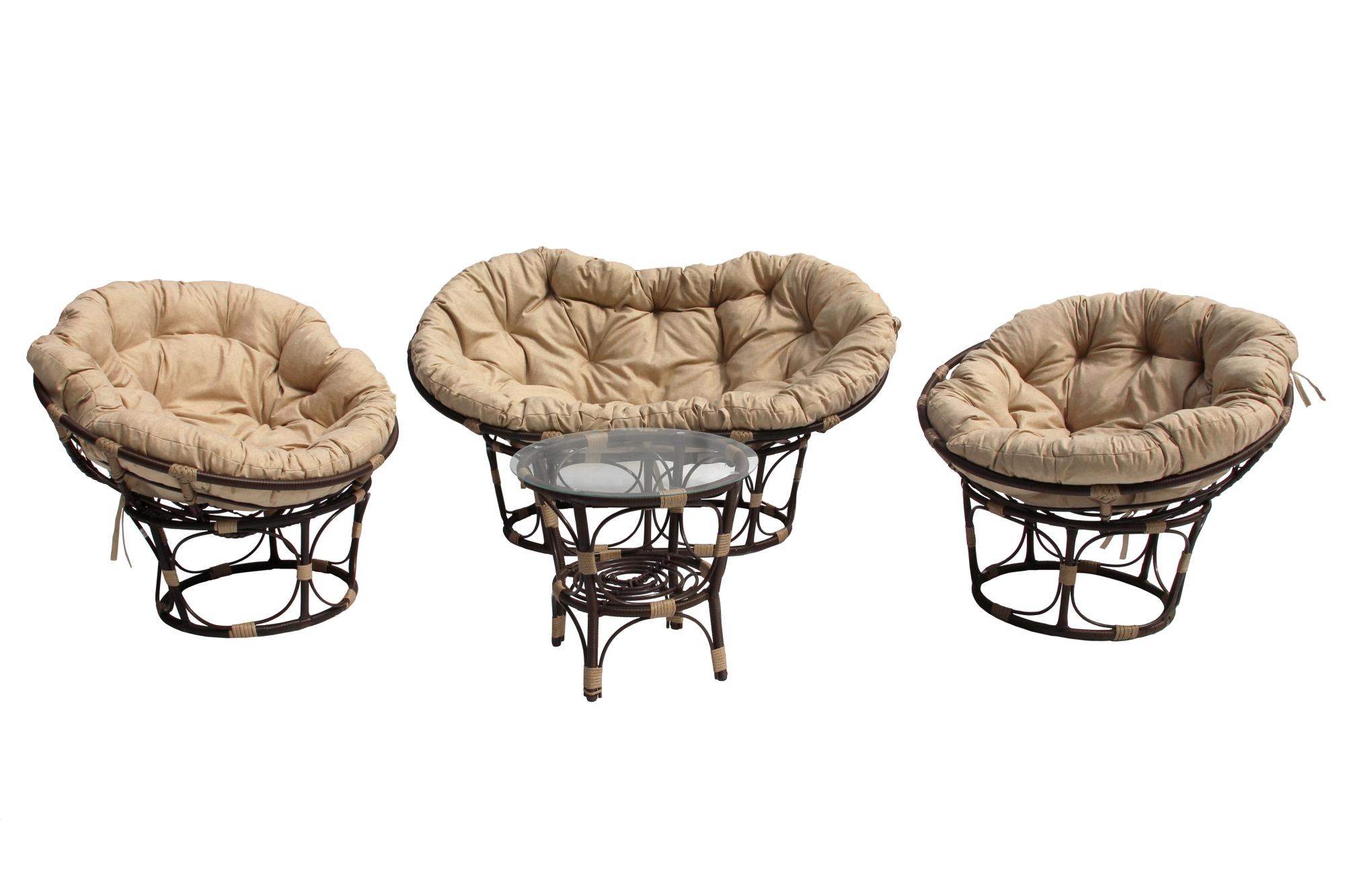 Набор мебели BIGarden Романо 8уп ротанг корич, подуш беж: 2 крес 4уп, диван 2уп, стол 2уп