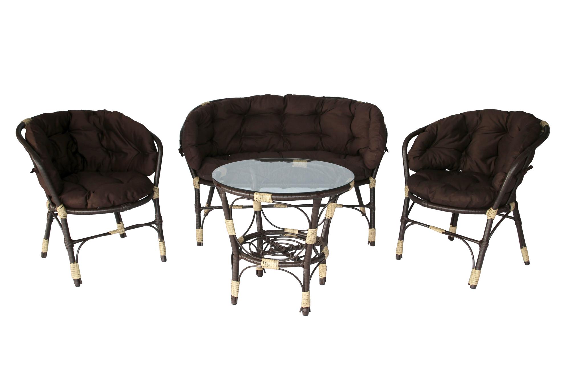 Набор мебели Garden Story Багамы Лайт Х 7у(диван+1штаб 2 крес+3уп подуш+стол+стекл) иск рот корич,м/э корич (Б)