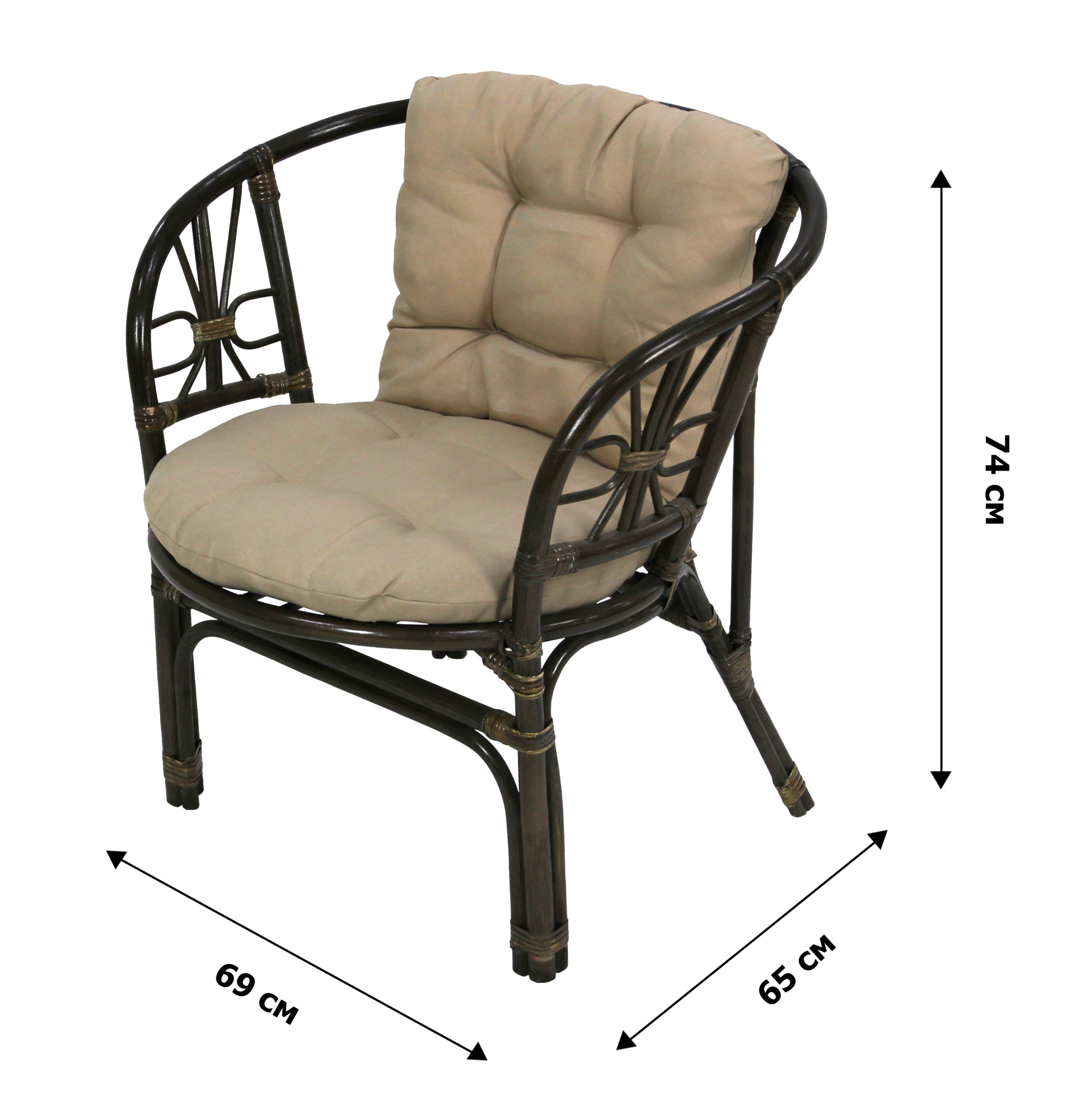 Габариты элементов (Ш/ГхДхВ) : стол: 60х60х56 кресло: 69х65х74 Цвет каркаса : коричневый Материал каркаса : ротанг натуральный Цвет чехла мягкого элемента/матраса : бежевый Узор ткани : без рисунка Материал чехла мягкого элемента : полиэстер+хлопок Толщина мягкого элемента : 9 Цвет поверхности : коричневый Материал поверхности : ротанг натуральный, стекло Комплектация : стол, 2 кресла Использование на открытом воздухе : да Страна производства : ИНДОНЕЗИЯ Дополнительно : Класс ротанга B.Глубина сиденья 52см, высота от пола до сиденья 40см. Подушки упакованы в полиэтиленовой пакет по 2 штуки (спинка+сиденье), чехлы не съемные, материал влагооталкивающий, сухая чистка,Характеристики