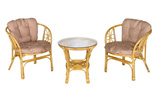 Габариты элементов (Ш/ГхДхВ) : стол: 600х600х550 кресло: 680х630х730 Цвет каркаса : медовый Материал каркаса : ротанг натуральный Цвет чехла мягкого элемента/матраса : бежевый Узор ткани : без рисунка Материал чехла мягкого элемента : полиэстер+хлопок Толщина мягкого элемента : 6 Цвет поверхности : медовый Материал поверхности : ротанг натуральный, стекло Комплектация : стол, 2 кресла Использование на открытом воздухе : да Страна производства : ИНДОНЕЗИЯ Дополнительно : класс ротанга - A, чехлы не съемные, материал влагооталкивающий, сухая чисткаХарактеристики