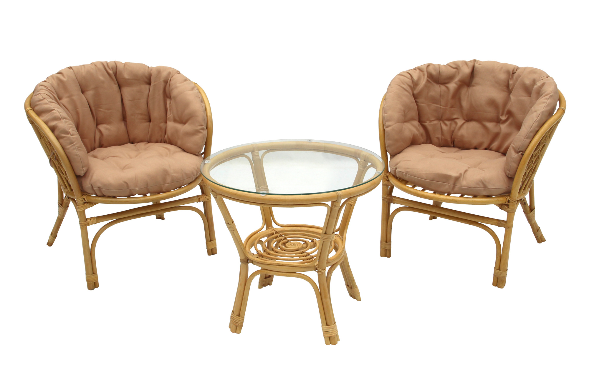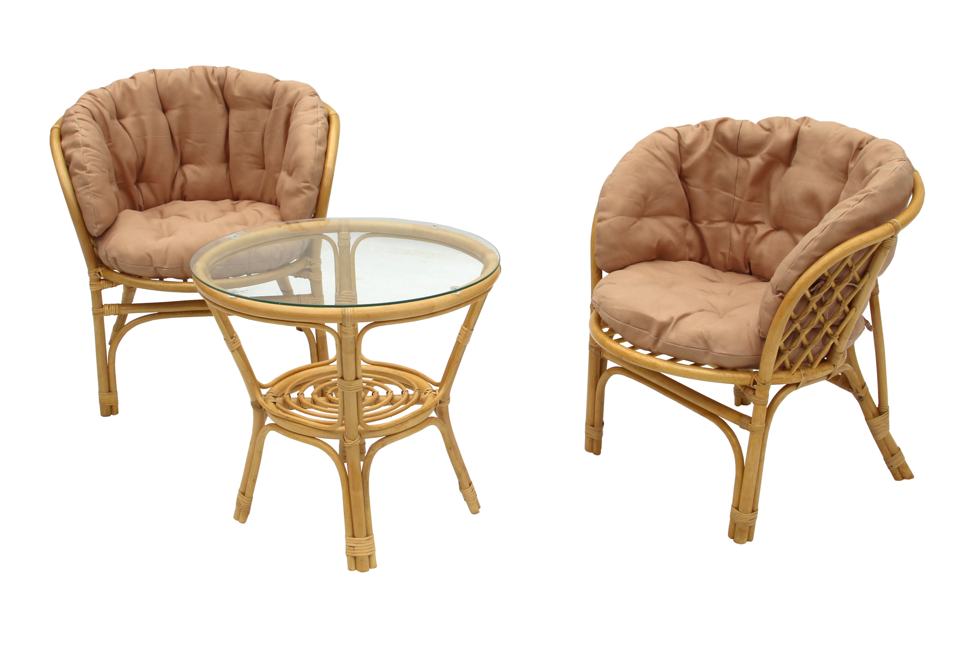 Набор мебели Garden Story Багамы Премиум мини (2кресла+стол (2 уп.), каркас медовый, подушки бежевые)