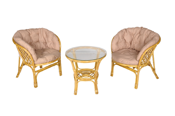 Габариты элементов (Ш/ГхДхВ) : стол: 60х60х56 кресло: 71х71х76 Цвет каркаса : медовый Материал каркаса : ротанг натуральный Цвет чехла мягкого элемента/матраса : бежевый Узор ткани : без рисунка Материал чехла мягкого элемента : полиэстер+хлопок Толщина мягкого элемента : 9 Цвет поверхности : медовый Материал поверхности : ротанг натуральный, стекло Комплектация : круглый стол (2 уп.), 2 кресла Использование на открытом воздухе : да Страна производства : ИНДОНЕЗИЯ Дополнительно : класс ротанга - A, Глубина сиденья 52см, высота от пола до сиденья 40см. Подушки упакованы в полиэтиленовой пакет по 2 штуки (спинка+сиденье). Чехлы не съемные, материал влагооталкивающий, сухая чисткаХарактеристики