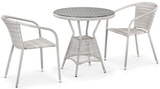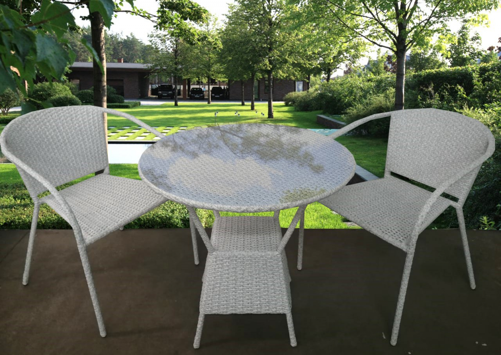 Комплект мебели из искусственного ротанга покорит Вас привлекательным видом и удобством. Эргономичная форма кресел и круглый обеденный стол обеспечат комфортное принятие пищи или уютные беседы за чаем. Мебельный комплект будет удачно смотреться как в гостиной квартиры, так и на террасе загородного дома. Плетеная мебель из искусственного ротанга устойчива к воздействию ультрафиолета и влаги, не нуждается в особом уходе. Стальной каркас делает этот комплект устойчивым и долговечным. В комплект мебели входит: 1. Стол, размер: Ø750х740 мм - 1 шт. 2. Кресло, размер: 580х600х780 мм - 2 шт. Особенности: Стекло: закаленное - 5 мм. Каркас: труба сталь (оцинкованная). Материал: искусственный ротанг. Открыть инструкцию по уходу.Характеристики