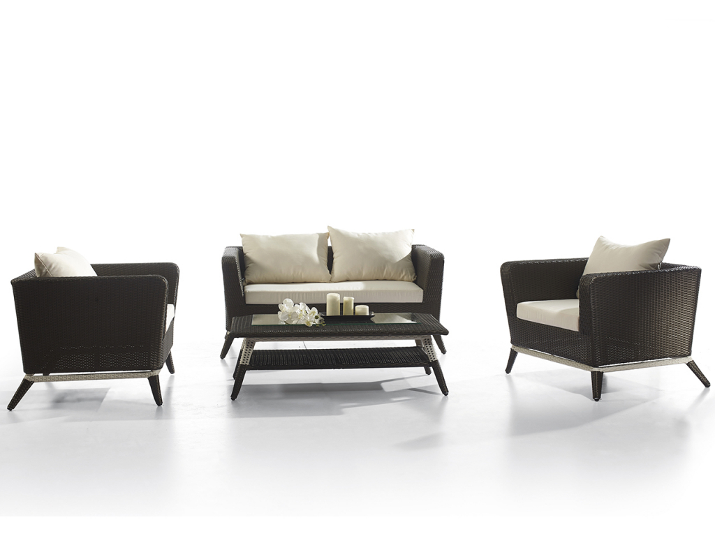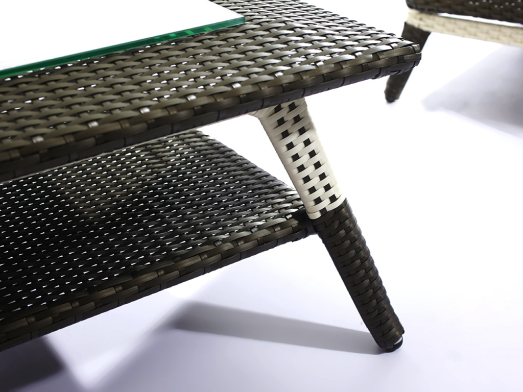 Красивый и современный комплект мебели Tandem, выполнен из искусственного ротанга кофейного цвета с белыми вставками. В комплект входит 4 предмета: 1. Двухместный диван, размер 1480x880x700 мм - 1 шт. 2. Кресло, размер 880х880х700 мм - 2 шт. 3. Кофейный столик, размер 1200х620х380 мм - 1 шт. Характеристики: Встроенный алюминиевый каркас. Тип плетения: плоское. Ручная работа. Подушки включены в стоимость. Толщина подушек на сиденье: 80 мм. Декоративные подушки: 4 шт. Столешница выполнена из закаленного стекла, 5 мм. Обратите внимание! Фабрика Tagliamento оставляет за собой право вносить изменения в собственные изделия в любой момент, которые сочтет необходимыми в целях улучшения своих изделий на основании нововведений и требований рынка.Характеристики