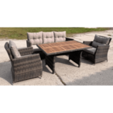 В составе комплекта: Трехместный диван, стол (столешница дерево) и 2 кресла. Высококачественная лоза из полиротанга коричневого цвета стойкая к любым атмосферным явлениям. Крепкий стальной каркас с полимерным антивандальным покрытием и отличным качеством сварки. Изделие сплетено вручную нашими мастерами под жестким контролем качества на каждом этапе производства. Лоза максимально приближена по рельефу и текстуре к естественному материалу. Идеально подходит для использования на улице и внутри помещения в любую погоду. Не боится воды, солнца и минусовой температуры.