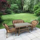 В составе комплекта: двухместный диван, два кресла и обеденный стол.