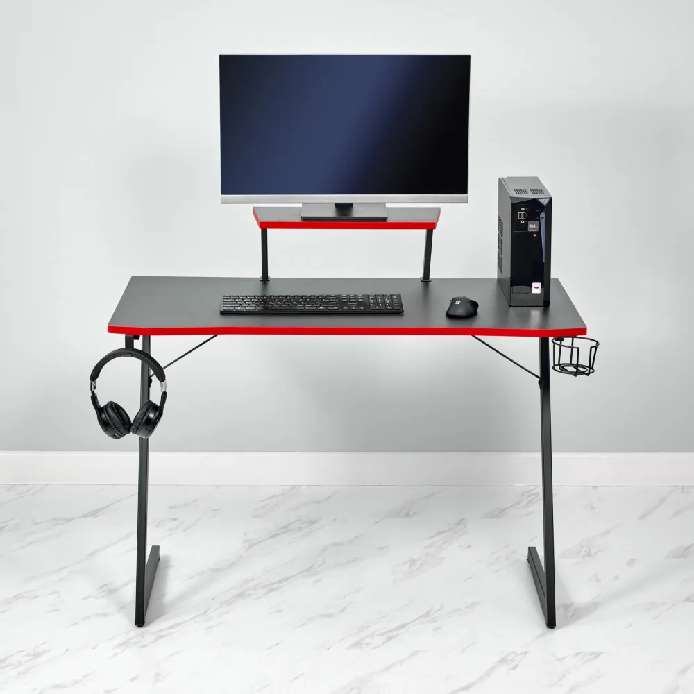 Материал: МДФ16 мм, металл Кромка ПВХ 1 мм Декоративное покрытие стола "под карбон" Кромка красного цвета Ножки чёрные Размер: 110х59х75 см Толщина столешницы: 16мм Полка для монитора размером 40х20см Высота стола по полку для монитора: 93см. Стальная рама: 20*40*0.8 мм, 20*20*1 мм Максимальная нагрузка 200кг Вес: 14,4кг. В комплектации полка для монитора, подстаканник, крючок для наушников Поставляется в разобранном виде. В комплекте идёт инструкция и комплект аксессуаров для сборки.Вы можете купить Геймерский стол Bradex Home Basic 110x59x75см оптом в нашем магазине, предложим цену с оптовой скидкой.