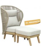 Лаунж-кресло плетеное с высокой спинкой и пуфом Tagliamento Mali, натуральный