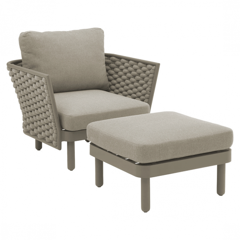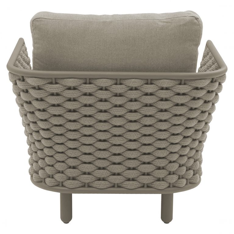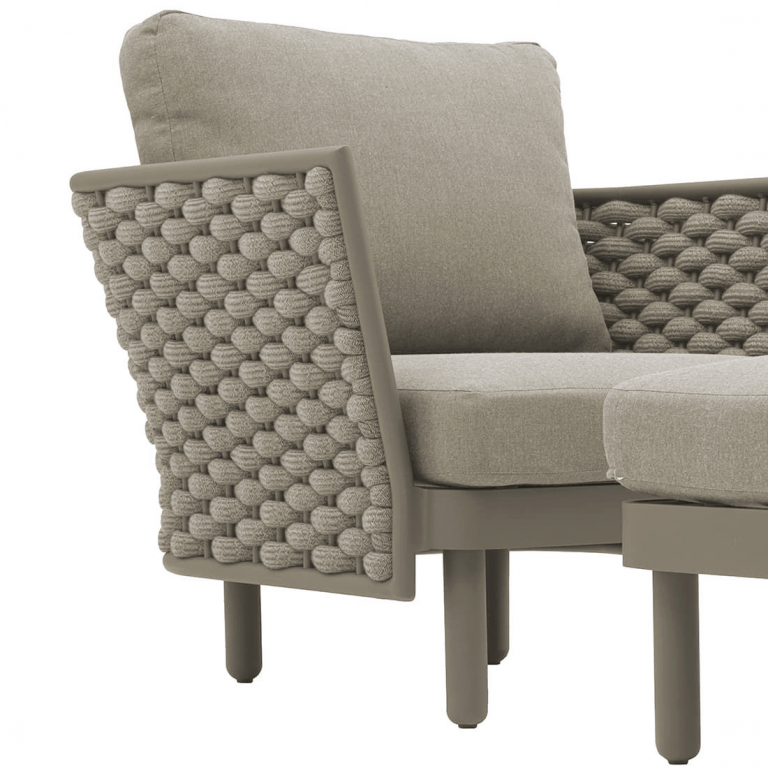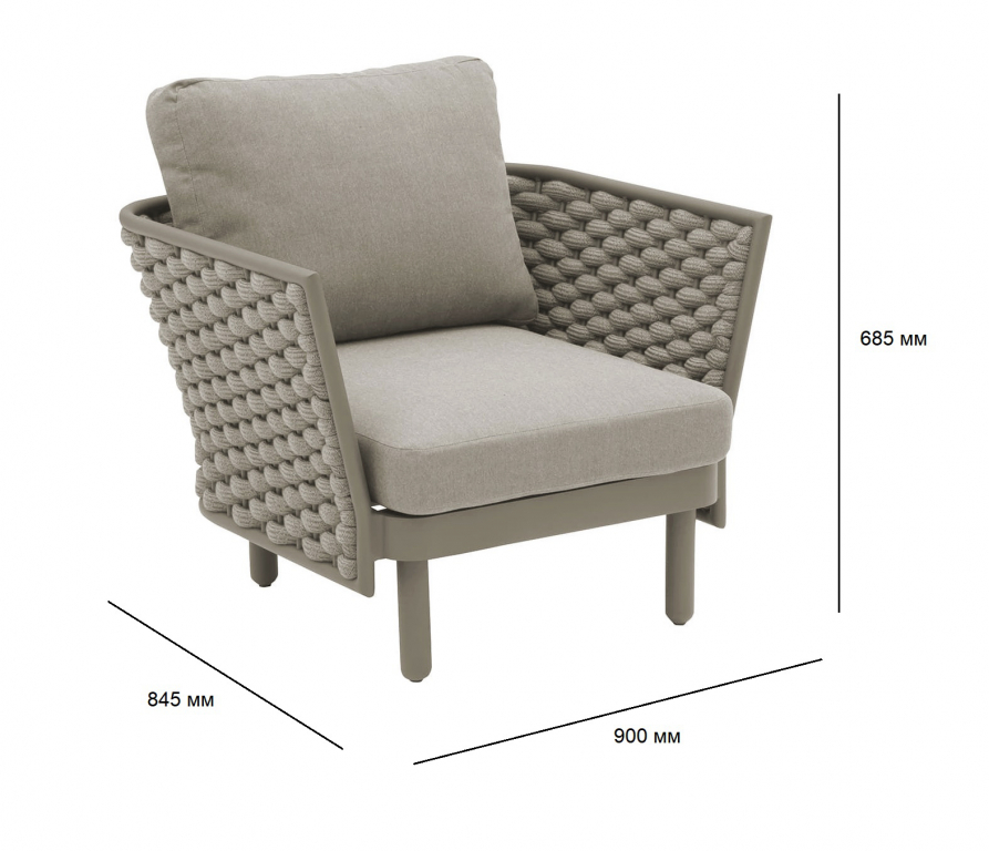 Продажа данной модели осуществляется оптом от 20 шт. Коллекция Leon нежна и элегантна, сочетает в себе изгибы и прямые линии, обретая вкусовой баланс. Строгие линии алюминиевого каркаса с порошковым покрытием кресла Leon сочетаются с мягким плетением акрилового каната и мягкими подушками, создавая стильную и современную модель в актуальной расцветке. Каркас в приятном теплом оттенке излучает спокойствие и неторопливый темперамент. Благодаря плетению из роупа кресло становится намного оригинальнее и прочнее. Благодаря покрытию на подушках не образовываются пятна грязи, жидкости и брызги - они просто собираются в капли и стекают по ее поверхности. Пролитую жидкость можно легко стереть тряпкой, а грязь легко удаляется обычной щеткой. Особенности: Каркас из алюминия, который является одним из наиболее коррозионно-стойких металлов. Алюминий имеет защитное порошковое покрытие, которое предотвращает коррозию и делает этот материал подходящим для наружного применения. Уникальное плетение из водонепроницаемого акрилового роупа, который снаружи изготовлен из материала, окрашенного акриловым раствором, внутренняя сердцевина покрыта EVA для придания прочности. Обивка подушек выполнена из окрашенного погодостойкого акрила. Наполнитель подушек: поролон плотностью 25 кг/м3. Все материалы устойчивы к УФ-излучению и другим погодным воздействиям. Открыть палитру материалов. Открыть инструкцию по уходу. Для уточнения всех возможных вариантов материала и цвета данного изделия обращайтесь к нашим менеджерам.Характеристики