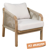Ravona - это современная садовая коллекция из АКАЦИИ, выполненная в комбинации натурального веревочного плетения роуп, акации и бежевых подушек. Цвет натуральной твердой древесины представляет собой натуральный цвет с мелкой текстурой, придающий древесине приятный теплый вид. Ravona - это стиль и элегантность на Вашей веранде. Особенности: Материал - АКАЦИЯ, отделка экомаслом тик Light #01A. Веревочное плетение роуп 6 мм толщиной на спинке и подлокотниках излучает стиль в сочетании с деревянными поверхностями. Древесина, из которой изготовлена мебель, имеет сертификацию FSC (Forest Stewardship Council) - гарантия качества и происхождения древесины. Знак FSC - показатель того, что продукция происходит из леса, в котором ведется экологически и социально ответственное лесное хозяйство. Благодаря своей долговечности, прочности и устойчивости к вредителям эта древесина была создана для изготовления садовой мебели. Страна происхождения древесины: Вьетнам, Малайзия. Средняя плотность древесины: 550 кг/м3. Анодированная фурнитура из нержавеющей стали. Подушки в комплекте, ткань подушек - олефин, наполнитель - толстый поролон. Материалы устойчивы к УФ-излучению и другим погодным воздействиям. Цвет подушек - бежевый. Открыть инструкцию по уходу. Вся деревянная мебель должна обрабатываться специальным маслом или пропиткой минимум 1 раз в 6 месяцев (в условиях высокой влажности обработку следует проводить чаще). Для данной мебели не рекомендуются резкие температурные перепады. Мебель из дерева акации должна использоваться только под навесом. Дерево является натуральным материалом, поэтому любые трещины, неравномерные природные рисунки, различность оттенков ‐ являются естественным процессом, который вызван температурными изменениями или влажностью.Характеристики