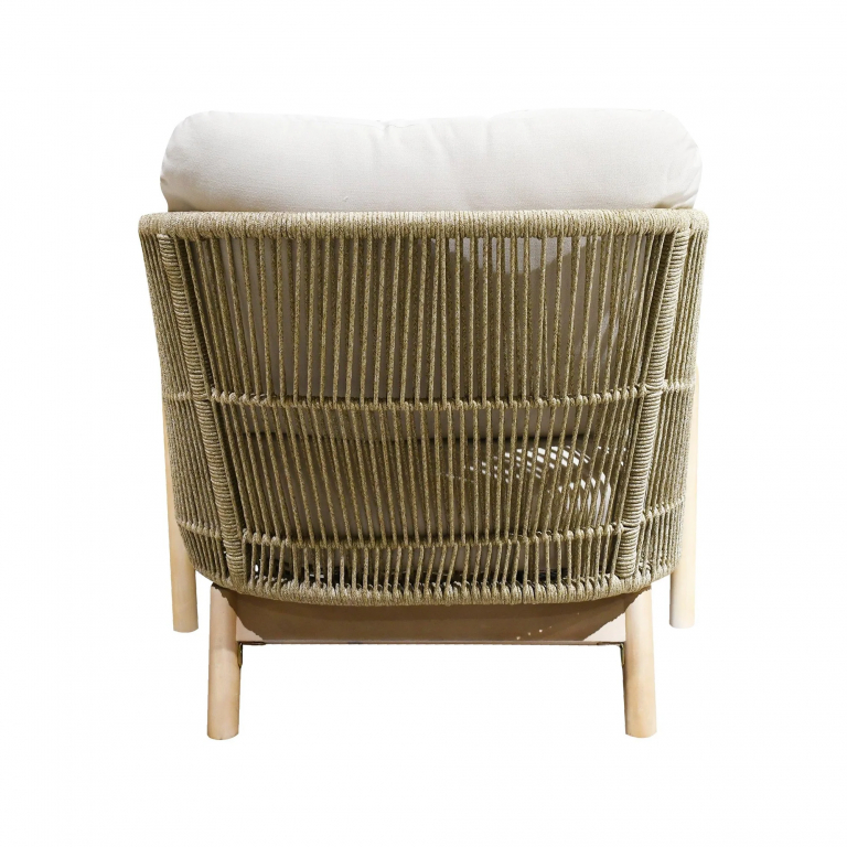 Крепкая алюминиевая рама оплетена синтетическим роупом. Обивка подушек выполнена из ткани олефин - прочного материала, устойчивого к воздействию грязи, влаги и УФ-лучей. Talara - это современная коллекция садовой мебели из акации, выполненная в комбинации натурального веревочного плетения роуп, акации и светлых подушек. Цвет натуральной твердой древесины представляет собой натуральный цвет с мелкой текстурой, придающий древесине приятный теплый вид. Особенности: Материал - АКАЦИЯ, отделка экомаслом тик Light #01A. Веревочное плетение роуп толщиной 6 мм на спинке и подлокотниках излучает стиль в сочетании с деревянными поверхностями. Цвет плетения: бежевый. Древесина, из которой изготовлена мебель, имеет сертификацию FSC (Forest Stewardship Council) - гарантия качества и происхождения древесины. Знак FSC - показатель того, что продукция происходит из леса, в котором ведется экологически и социально ответственное лесное хозяйство. Благодаря своей долговечности, прочности и устойчивости к вредителям эта древесина была создана для изготовления садовой мебели. Страна происхождения древесины: Вьетнам, Малайзия. Средняя плотность древесины: 550 кг/м3. Анодированная фурнитура из нержавеющей стали. Подушки в комплекте, ткань подушек - олефин, наполнитель - толстый поролон. Материалы устойчивы к УФ-излучению и другим погодным воздействиям. Цвет подушек: лен.Характеристики