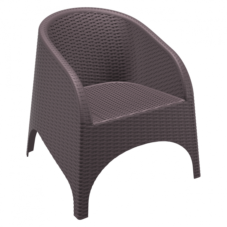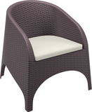Вы можете купить Кресло пластиковое плетеное с подушкой Siesta Contract Aruba, коричневый оптом в нашем магазине, предложим цену с оптовой скидкой.