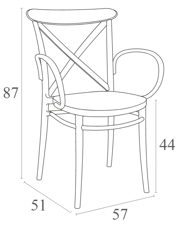 Кресло Cross XL изготавливается из полипропилена, упрочненного стекловолокном, полученным с использованием новейшего поколения технологий формования пластмасс под давлением.Благодаря использованию высококачественных материалов, они долгое время не теряют своего привлекательного внешнего вида, даже несмотря на активную эксплуатацию. Пластиковые кресла серии Cross XL станут отличным выбором для обстановки фуд-кортов, кафе и ресторанов. Отсутствие металлического каркаса и устойчивость к ультрафиолетовому воздействию обеспечивают использование пластиковых кресел Cross XL в том числе и на открытых площадках. Особенности: кресло имеет символичный своему названию дизайн спинки с крестовиной и дугообразные подлокотники; изготовлено из высококачественного полипропилена, армированного стекловолокном; не имеет металлического каркаса, не ржавеет, не поддается коррозии; устойчиво к ультрафиолету и атмосферным осадкам, выдерживает минусовую температуру до 20 градусов; штабелируемое - занимает минимум места при хранении; подходит для использования на открытом воздухе и в помещении; сертификат CATAS. Открыть технические характеристики.Характеристики