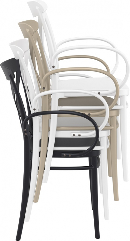 Кресло Cross XL изготавливается из полипропилена, упрочненного стекловолокном, полученным с использованием новейшего поколения технологий формования пластмасс под давлением. Пластиковые кресла серии Cross XL станут отличным выбором для обстановки фуд-кортов, кафе и ресторанов. Благодаря использованию высококачественных материалов, они долгое время не теряют своего привлекательного внешнего вида, даже несмотря на активную эксплуатацию. Отсутствие металлического каркаса и устойчивость к ультрафиолетовому воздействию обеспечивают использование пластиковых кресел Cross XL в том числе и на открытых площадках. Особенности: кресло имеет символичный своему названию дизайн спинки с крестовиной и дугообразные подлокотники; изготовлено из высококачественного полипропилена, армированного стекловолокном; не имеет металлического каркаса, не ржавеет, не поддается коррозии; устойчиво к ультрафиолету и атмосферным осадкам, выдерживает минусовую температуру до 20 градусов; штабелируемое - занимает минимум места при хранении; подходит для использования на открытом воздухе и в помещении.Характеристики