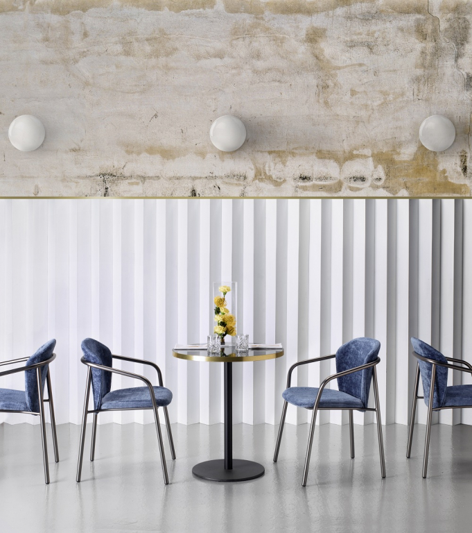 Дизайн: Marcello Ziliani. "Коллекция Finn основана на этом контрасте, объединении северных элементов, отфильтрованных через типично итальянскую сладость и мягкость, в игре отсылок и отношений в поисках идеального синтеза между напряжением и балансом". Marcello Ziliani Линии каркаса кресла Finnсоздают чистую и минималистичную архитектуру, чтобы стать опорным элементом мягкого, гостеприимного и обволакивающего сиденья.Материалы, цвета, отделка и изысканные детали - вот ингредиенты, которые подчеркивают индивидуальность и характер этой коллекции. Особенности: Каркас выполнен из сталиØ25 мм. Сиденье и спинка с деревянным сердечником и мягкой обивкой. Варианты отделки каркаса: VA (антрацит), VE (терракота), NB (матовый никель), OM (матовое золото), NO (черный матовый никель), BV (винтажная бронза). Варианты обивки: ткани категорий: V5 (шенилл), V3 (вельвет), T. Открыть каталог отделоки обивок. Открыть технические характеристики. Цена на сайте указана за модель с отделкой каркаса NO и обивкой из тканиV5. Цены на другие модели и дополнительную информацию уточняйте у менеджеров.Характеристики