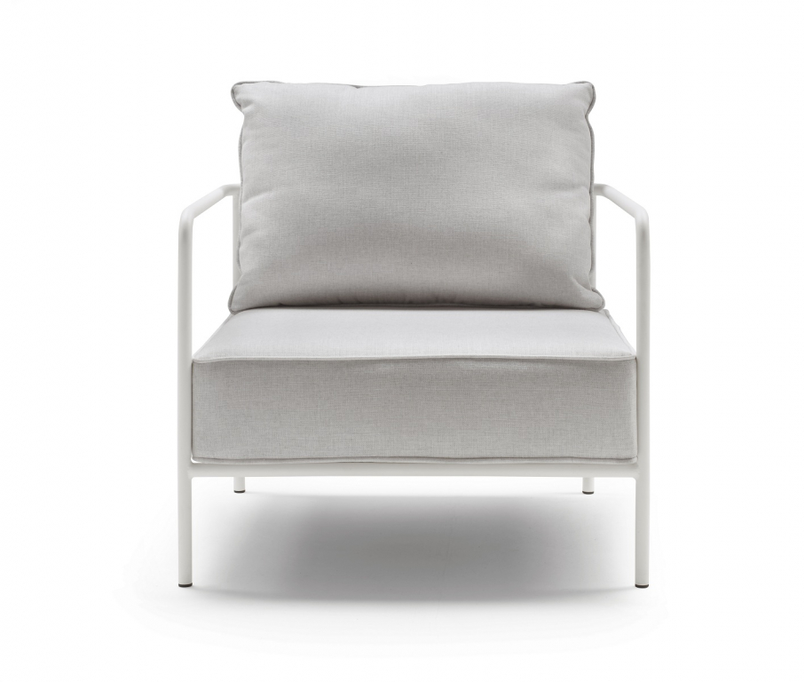 Дизайн: Meneghello Paolelli. Семейство модульной мягкой мебели Flap пополнилось тремя новыми компонентами: креслом, пуфом и широкими модулями. Разработанные с целью еще более гибкого реагирования как на потребность в комфорте, так и на особые характеристики каждого пространства, эти изделия позволяют добиться большей артикуляции и ритмичности в композиции сидений, предлагая новые опорные поверхности и увеличиваявозможности для размещения и обмена между теми, кто ими пользуется. Flap– это коллекция модульной мягкой мебели, в которой элементы объединены по композиции с опорными поверхностями. Отличительной частью конструкции являютсяэлементы в спинке, напоминающие по форме закрылки самолета, с функцией поддержки задних подушек и способные поворачиваться вокруг оси примерно на 15 градусов: это позволяет подушке иметь разный наклон для достижения максимально возможной степени комфорта. МодулиFlap подходят для различных условий использования как в жилом, так и в контрактном секторах. Обивка подушекпредлагается в тщательно подобранных различных текстурах, чтобы гармонично вписаться в классическую или современную обстановку на открытом воздухе. Подушки выполнены из акриловой ткани и предназначены для использования на улице. Дополнением к элементам служит приставной кофейный столик с окрашенной стальной рамой и столешницей из компакт-ламината HPL. Особенности: Каркас выполнен из трубчатой стали с полиэстерным порошковым покрытием. Съемная подушка сиденья с чехлом на молнии. Набивка: недеформируемый пенополиуретан (плотность 25 кг/м3), лист полиэстерного волокна (плотность 500 г/м2), покрытый 100% водоотталкивающей полиэфирной полиэстерной SprayTest в сочетании с полиэстерным волокном (плотность 200 г/м2). Нескользящее дно подушки. Съемная подушка спинкис чехлом на молнии. Набивка: штапельный полиэстер, покрытый 100% водоотталкивающей полиэстерной тканью SprayTest в сочетании с полиэстерным волокном (плотность 200 г/м2) Обивка подушек может бытьвыполненаиз тканей коллекций Acrylic (водо- и грязестойкий акрил), Acrisol (водо- и грязестойкий акрил), Agora (устойчивый к плесени, ультрафиолетовому излучению,воздухопроницаемый акрил), Sunbrella (огнестойкий, дышащий, водо- и грязестойкий, устойчивыйк плесени иультрафиолетовому излучению акрил). Варианты сочетаний цвета каркаса и обивки можно выбрать из палитры. Данная модель предназначена для использования на летних верандах, террасах, фудкортах, а такжево внутреннем интерьере кафе, ресторанов. Посмотреть каталог отделоки обивок. Посмотреть технические характеристики. Цена на сайте указана за модель с каркасом в отделке лен и обивкой белого цвета (сиденье и спинка из ткани Agora).Для уточнения всех возможных вариантов материала и цвета данного изделия обращайтесь к нашим менеджерам.Характеристики