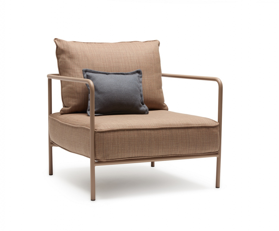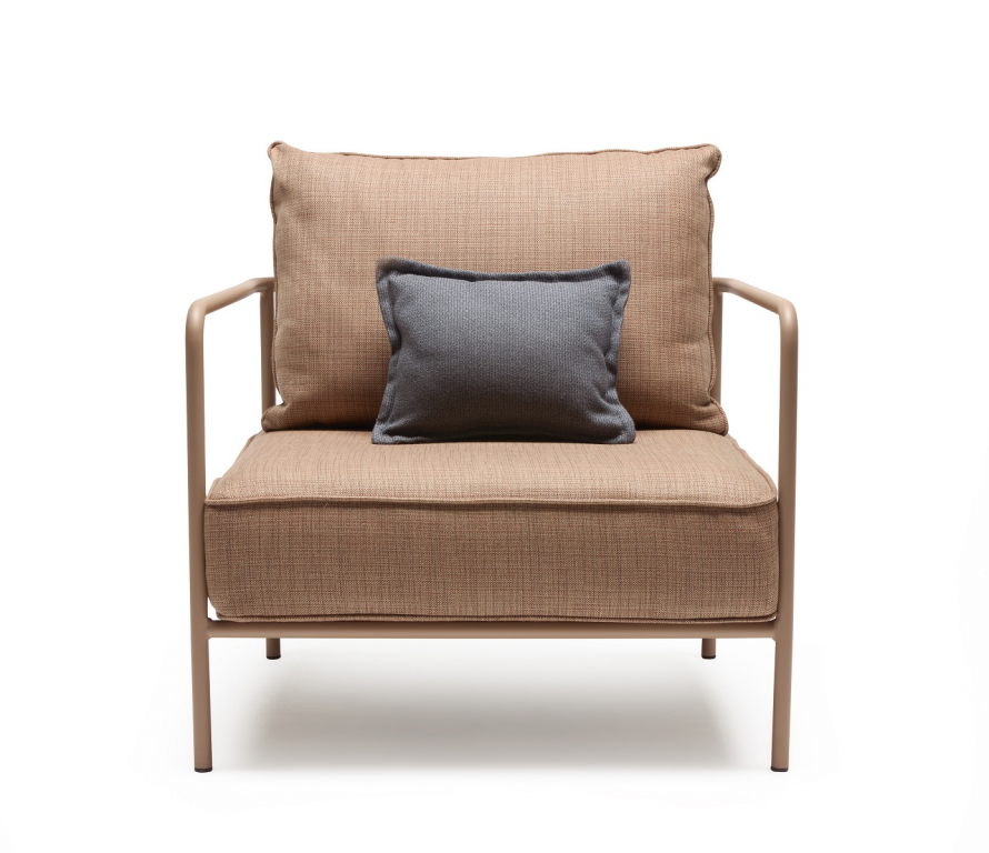 Дизайн: Meneghello Paolelli. Семейство модульной мягкой мебели Flap пополнилось тремя новыми компонентами: креслом, пуфом и широкими модулями. Разработанные с целью еще более гибкого реагирования как на потребность в комфорте, так и на особые характеристики каждого пространства, эти изделия позволяют добиться большей артикуляции и ритмичности в композиции сидений, предлагая новые опорные поверхности и увеличиваявозможности для размещения и обмена между теми, кто ими пользуется. Flap– это коллекция модульной мягкой мебели, в которой элементы объединены по композиции с опорными поверхностями. Отличительной частью конструкции являютсяэлементы в спинке, напоминающие по форме закрылки самолета, с функцией поддержки задних подушек и способные поворачиваться вокруг оси примерно на 15 градусов: это позволяет подушке иметь разный наклон для достижения максимально возможной степени комфорта. МодулиFlap подходят для различных условий использования как в жилом, так и в контрактном секторах. Обивка подушекпредлагается в тщательно подобранных различных текстурах, чтобы гармонично вписаться в классическую или современную обстановку на открытом воздухе. Подушки выполнены из акриловой ткани и предназначены для использования на улице. Дополнением к элементам служит приставной кофейный столик с окрашенной стальной рамой и столешницей из компакт-ламината HPL. Особенности: Каркас выполнен из трубчатой стали с полиэстерным порошковым покрытием. Съемная подушка сиденья с чехлом на молнии. Набивка: недеформируемый пенополиуретан (плотность 25 кг/м3), лист полиэстерного волокна (плотность 500 г/м2), покрытый 100% водоотталкивающей полиэфирной полиэстерной SprayTest в сочетании с полиэстерным волокном (плотность 200 г/м2). Нескользящее дно подушки. Съемная подушка спинкис чехлом на молнии. Набивка: штапельный полиэстер, покрытый 100% водоотталкивающей полиэстерной тканью SprayTest в сочетании с полиэстерным волокном (плотность 200 г/м2) Обивка подушек может бытьвыполненаиз тканей коллекций Acrylic (водо- и грязестойкий акрил), Acrisol (водо- и грязестойкий акрил), Agora (устойчивый к плесени, ультрафиолетовому излучению,воздухопроницаемый акрил), Sunbrella (огнестойкий, дышащий, водо- и грязестойкий, устойчивыйк плесени иультрафиолетовому излучению акрил). Варианты сочетаний цвета каркаса и обивки можно выбрать из палитры. Данная модель предназначена для использования на летних верандах, террасах, фудкортах, а такжево внутреннем интерьере кафе, ресторанов. Посмотреть каталог отделоки обивок. Посмотреть технические характеристики. Цена на сайте указана за модель с каркасом в карамельной отделке и обивкой ржавого цвета (сиденье и спинка из ткани Agora).Для уточнения всех возможных вариантов материала и цвета данного изделия обращайтесь к нашим менеджерам.Характеристики