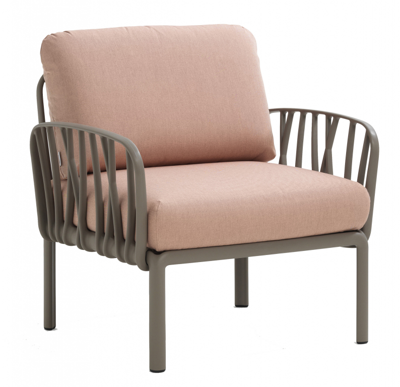 Вы можете купить Кресло пластиковое с подушками Nardi Komodo Poltrona, тортора, розовый оптом в нашем магазине, предложим цену с оптовой скидкой.