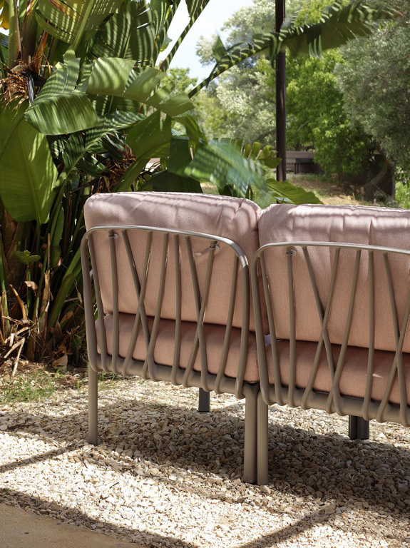 Дизайн: Raffaello Galiotto. На выставке Salone del Mobile 2018 в Милане Nardi представили новую коллекцию модульной мебели Komodo, куда входят различные модульные элементы, благодаря которым можно создавать различные комбинации. Модули Komodo выполнены из стеклопластика, имеют складные спинки и боковины, съемные подушки, благодаря чему можно составить диван любой длины, превратить отдельные модули в столики или пуфы. Ветвистая переплетенная конструкция вытекает из строгого геометрического дизайна, который также включает инновационную систему соединения между спинкой и сиденьем, осуществленную с помощью простого вращения. Последнее решение позволяет избежать непривлекательных стыков и открытых отверстий и поддерживает эстетическую гармонию плетеной конструкции на сиденье и спинке. Особенности: Кресло включает в себя: 1 сиденье, 1 спинку, 2 подлокотника, 1 подушку на сиденье, 1 подушку на спинку. Модель выполнена из полностью перерабатываемого материала - стеклопластика (полипропилен, стекловолокно) - прочного, нетоксичного и антистатичного, устойчивого к любой погоде и средам с повышенной соленостью. Сиденья можно закрепить с одной стороны, а спинки и подлокотники можно прикрепить с любой стороны. Возможные цвета каркаса: белый (bianco), антрацит (antracite), тортора (tortora), агава (agave). Возможные цвета подушек из акрила: серый (grigio), розовый (rosa quarzo). Возможные цвета подушек из ткани Sunbrella: синий (adriatic), лед (ghiaccio), авокадо (avocado), джунгли (giungla), холст (canvas). Возможные цвета подушек из ткани TECH: панама (panama). Матовая отделка, нескользящие ножки. Изделие сертифицировано CATAS. Открыть технические характеристики. Открыть инструкцию по сборке. Можно докупать модули и корректировать размеры мебели под необходимые размеры. Элементы серии Кomodo комбинируются между собой в любой последовательности, создавая индивидуальные решения для Вашего интерьера.Характеристики