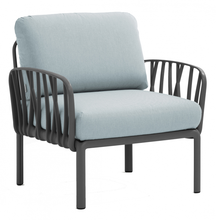 Вы можете купить Кресло пластиковое с подушками Nardi Komodo Poltrona, антрацит, лед оптом в нашем магазине, предложим цену с оптовой скидкой.