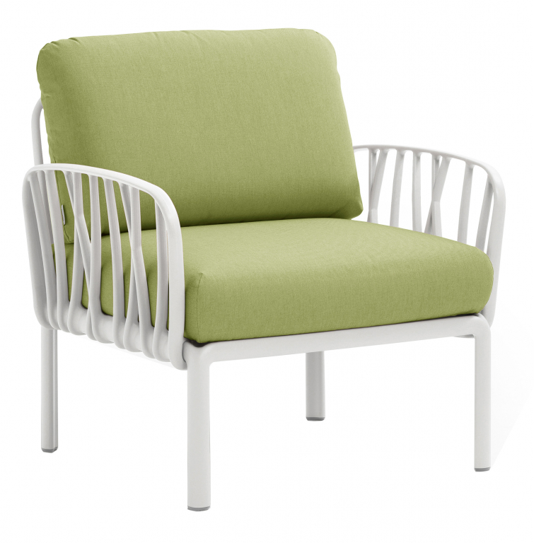 Вы можете купить Кресло пластиковое с подушками Nardi Komodo Poltrona, белый, авокадо оптом в нашем магазине, предложим цену с оптовой скидкой.