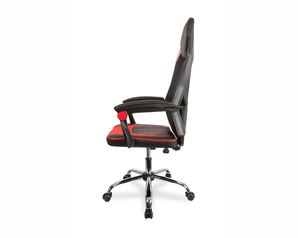 Геймерское кресло в стиле фантастического боевого аниме с набирающей сейчас популярностью шарнирной конструкцией подлокотников. Интегрированный в спинку подголовник из экокожи. Механизм наклона спинки с фиксацией в любом положении. Обивка: спинка сетка(Mesh), сиденье экокожа. Колёса для паркета(ламината).