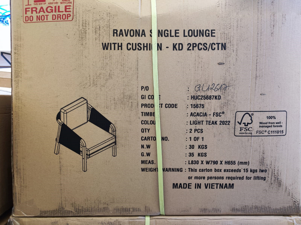 Ravona - это современная садовая коллекция из АКАЦИИ, выполненная в комбинации натурального веревочного плетения роуп, акации и бежевых подушек. Цвет натуральной твердой древесины представляет собой натуральный цвет с мелкой текстурой, придающий древесине приятный теплый вид. Ravona - это стиль и элегантность на Вашей веранде. Особенности: Материал - АКАЦИЯ, отделка экомаслом тик Light #01A. Веревочное плетение роуп 6 мм толщиной на спинке и подлокотниках излучает стиль в сочетании с деревянными поверхностями. Древесина, из которой изготовлена мебель, имеет сертификацию FSC (Forest Stewardship Council) - гарантия качества и происхождения древесины. Знак FSC - показатель того, что продукция происходит из леса, в котором ведется экологически и социально ответственное лесное хозяйство. Благодаря своей долговечности, прочности и устойчивости к вредителям эта древесина была создана для изготовления садовой мебели. Страна происхождения древесины: Вьетнам, Малайзия. Средняя плотность древесины: 550 кг/м3. Анодированная фурнитура из нержавеющей стали. Подушки в комплекте, ткань подушек - олефин, наполнитель - толстый поролон. Материалы устойчивы к УФ-излучению и другим погодным воздействиям. Цвет подушек - бежевый. Открыть инструкцию по уходу. Вся деревянная мебель должна обрабатываться специальным маслом или пропиткой минимум 1 раз в 6 месяцев (в условиях высокой влажности обработку следует проводить чаще). Для данной мебели не рекомендуются резкие температурные перепады. Мебель из дерева акации должна использоваться только под навесом. Дерево является натуральным материалом, поэтому любые трещины, неравномерные природные рисунки, различность оттенков ‐ являются естественным процессом, который вызван температурными изменениями или влажностью.Характеристики