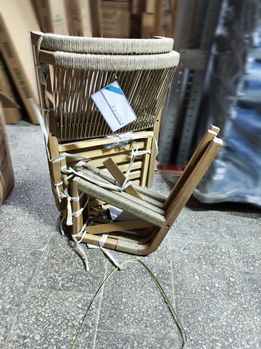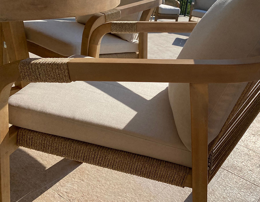 Веревочное плетение роуп 6 мм толщиной на спинке и подлокотниках излучает стиль в сочетании с деревянными поверхностями.