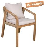 Rimini - это современное садовое обеденное кресло из АКАЦИИ, выполненное в комбинации натурального веревочного плетения роуп, акации и бежевых подушек. Цвет натуральной твердой древесины представляет собой натуральный цвет с мелкой текстурой, придающий древесине приятный теплый вид. Rimini - это стиль и элегантность на Вашей веранде.