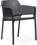 Net - моноблок из стеклопластика (полипропилен и стекловолокно) с перфорированным рисунком, который равномерно распределен по трехмерной поверхности сиденья. Материалы не подвержены воздействию УФ-излучения, благодаря этому кресло долго сохраняет свой первоначальный вид и не выцветает на солнце.