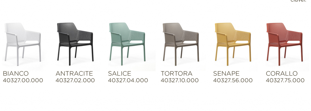 Дизайн:Raffaello Galiotto. Net Relax –это кресло с неотразимыми изысканнымобликом, которое так же может быть снабженомягкой тканевой подушкой с деликатно контрастирующими цветами. Свежееи расслабляющееNet Relaxукрашено перфорированным рисунком, равномерно распределенным по всей поверхности модели, который является результатом сложного трехмерного моделирования и фрезерования.Кресло оснащено нескользящими накладками наножках, поэтому его можно разместить возле бассейна. Это кресло из пластикапродолжает тенденцию компании в создании продуктов для изысканной релаксации. Оноподходит как для наружного, так и для внутреннего использования и доступно в нескольких как классических, так необычных цветах. КреслоNet Relax –обладатель премии ADI Design Index 2017 иRed Dot Award 2018. Особенности: Модельвыполнена из стеклопластика (полипропилен, усиленныйстекловолокном), который являетсянетоксичным, антистатическими 100%перерабатываемымматериалом. Матовая отделка с перфорированным сетчатым рисунком. Нескользящие накладки на ножках. Возможность штабелирования до 6 штук. Не требует специального ухода. Дополнительно можно приобрести подушку. Открыть технические характеристики. Для уточнения всех возможных вариантов материала и цвета данного изделия обращайтесь к нашим менеджерам.Характеристики