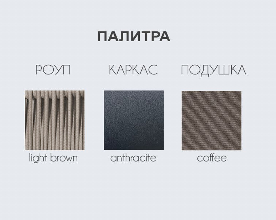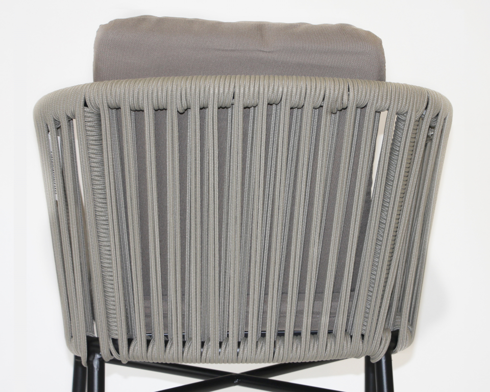 Обеденное кресло Palermo привлекает внимание и, несомненно, украсит любое открытое пространство. Уличное кресло с эргономичным и современным дизайном с алюминиевым каркасом и спинкой в плетении из роупа. Модель подходит для открытой террасы бара, ресторана, отеля или небольшого частного зимнего сада. Особенности: Каркас выполнен из алюминия, который является одним из наиболее коррозионно-стойких металлов. Алюминий имеет защитное порошковое покрытие, которое предотвращает коррозию и делает этот материал подходящим для наружного применения. Цвет покрытия - антрацит. Спинка кресла выполнена из плетения веревки (роуп). Материал - полиэстер темно-серого цвета. Ширина - 6 мм. Как и другие синтетические материалы, роуп рассчитан на любые погодные условия, и его можно оставлять на улице круглый год. В комплект входят акриловые подушки для сиденья и спинки толщиной 40 мм. Цвет - A14817. Открыть инструкцию по уходу.Характеристики