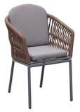 Спинка кресла выполнена из плетения веревки (роуп). Материал - олефин темно-коричневого (CHD6-13) цвета. Как и другие синтетические материалы, роуп рассчитан на любые погодные условия, и его можно оставлять на улице круглый год.
