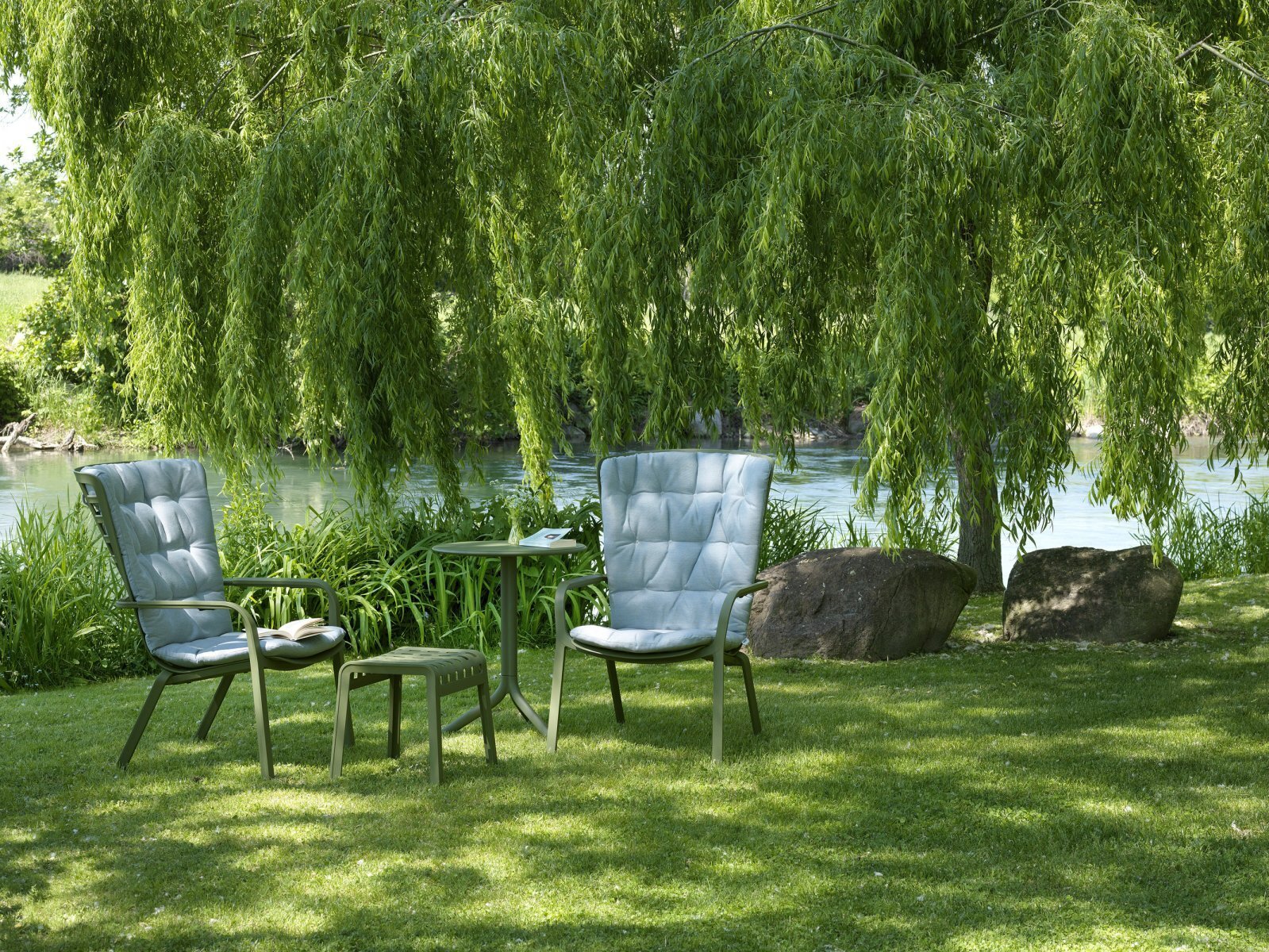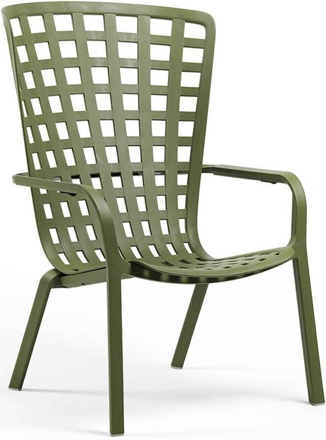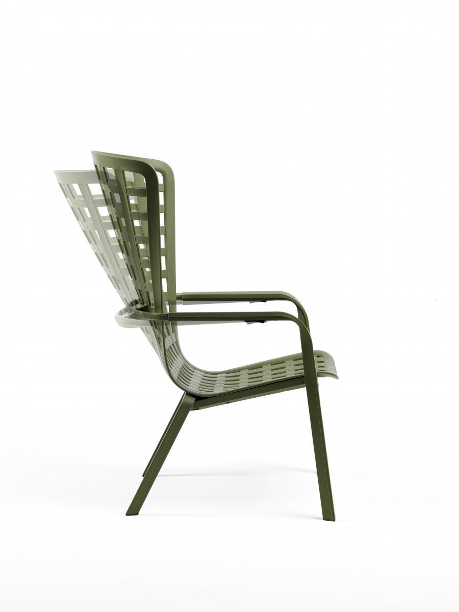 Folio - это инновационное расслабляющее кресло, регулируемое в двух положениях, предназначенное для уличного использования. Изготовлено из перерабатываемой стекловолоконной смолы. Кресло Folio может быть выполнено с фиксированным основанием либо на ножках-полозьях как романтическое кресло-качалка. Основная конструкция кресла сделана из одного перфорированного стекловолоконного листа (отсюда и название на итальянском языке "folio"), украшенного квадратным узором. Особенностью кресла является его изогнутый дизайн, не требующий каких-либо связующих элементов между сидением и спинкой. Кресло Folio полностью изготовлено в Италии - от дизайна до изготовления пресс-форм и производства.