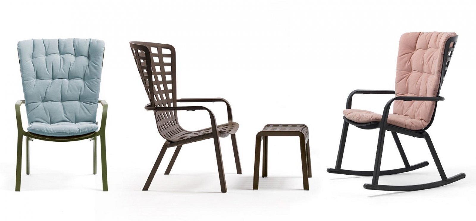 Folio - это инновационное расслабляющее кресло, регулируемое в двух положениях, предназначенное для уличного использования. Изготовлено из перерабатываемой стекловолоконной смолы. Кресло Folio может быть выполнено с фиксированным основанием либо на ножках-полозьях как романтическое кресло-качалка. Основная конструкция кресла сделана из одного перфорированного стекловолоконного листа (отсюда и название на итальянском языке "folio"), украшенного квадратным узором. Особенностью кресла является его изогнутый дизайн, не требующий каких-либо связующих элементов между сидением и спинкой. Кресло Folio полностью изготовлено в Италии - от дизайна до изготовления пресс-форм и производства.