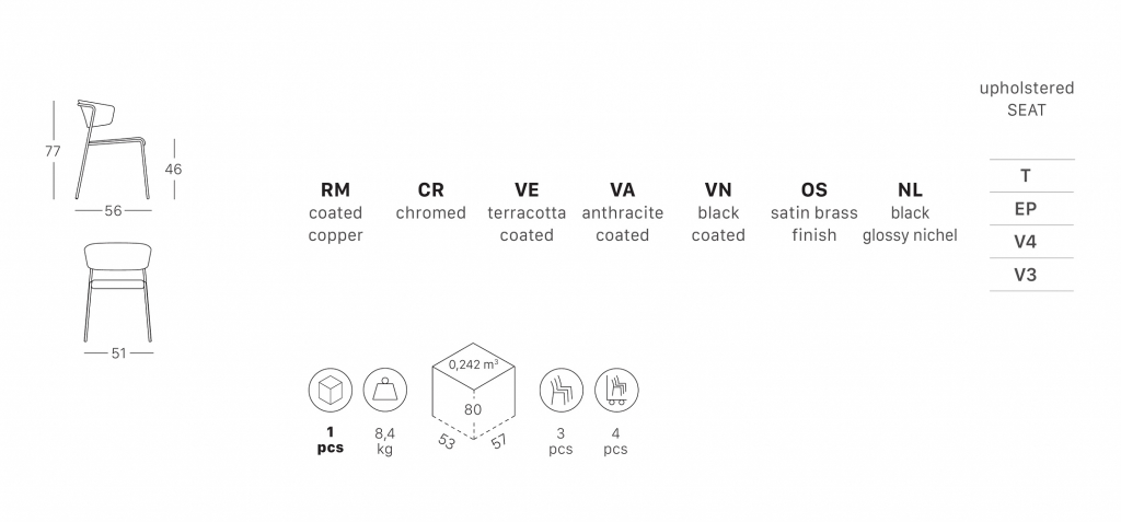 Мягкое креслоLisaна стальных ножках с деревянным корпусоми мягкой обивкойот дизайнерa Marcello Ziliani прекрасно впишется в обстановку частного дома, офисное пространство или современный интерьер кафе, бара или ресторана.КреслаLisa вдохновлены элегантными интерьерами 1950-х и 60-х годов. Тонкая трубчатая конструкция охватывает и поддерживает спинкус мягким сиденьем. Особенности: Четыре ножки выполнены из стали диаметром 16 мм. Варианты отделки: указаны в палитре. Варианты обивки: ткань, вельвет, огнестойкийвельвети искусственнаякожа.Доступные категории: T, EP, V4,V3. Данная модель предназначена для использования во внутреннем интерьере кафе и ресторанов. Кресла легко штабелируются для удобного хранения и транспортировки. Коллекция кресел и стульев Lisa получила престижную награду Archiproducts Design Awards 2018 в категории мебели. SCAB Design гордится мировым признанием, демонстрирующим нам, как компания фокусируется на новых дизайнерских решениях, которые сочетают «эстетику, функциональность и возможности». Коллекция удостоена престижной мировой награды Iconic Award 2019. Lisa была выбрана из 600 продуктов за выдающиеся качества дизайна и будет представлена в музее современного искусства Kölnischer Kunstverein на выставке под названием “Design in the Kunstverein”. Также коллекция Lisa получила одну из самых желанных международных наград: Good Design Award 2018, ежегодно присуждаемой Чикагским Атенеумом - международным музеем архитектуры и дизайна в Чикаго. Конкурс отбирает самые инновационные и экологически устойчивые продукты, которые помогают улучшить образ жизни современного общества. Открыть каталог отделоки обивок. Открыть технические характеристики. Цена на сайте указана за модель с обивкой из ткани V4 и каркасом черный глянцевый никель.Цены на другие модели Вы можете уточнить у менеджеров.Характеристики