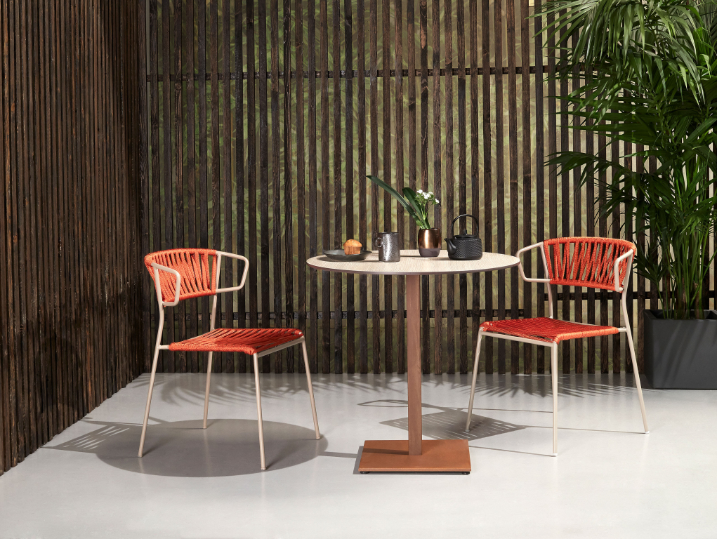 КреслоLisa Filoс корпусом из морского канатаи стальным каркасом от дизайнераMarcello Ziliani. Это обязательный предмет мебели для открытых пространств, неформальный, но хорошо отделанный, выполненный в изысканном сочетании структуры и рамы. Кресло дает легкую летнюю беззаботность барам и ресторанам вдоль моря. Особенности: Каркас выполнен из оцинкованной стальной трубы с полиэстеровым порошковымпокрытием диаметром 16мм. Оплетка изморского каната, доступногов нескольких цветах. Кресла легко штабелируются до 8 шт. для удобного хранения и транспортировки. Данная модель предназначена для использования на летних верандах, террасах, фудкортах, а такжево внутреннем интерьере кафе, ресторанов. Открыть каталог отделоки обивок. Открыть технические характеристики. Обращаем ваше внимание, что каждый цвет каркаса сочетается только с определенными цветами плетения. При выборе цветовой комбинацииориентируйтесь на таблицу с палитрой, где указаны доступные варианты сочетаний.Характеристики