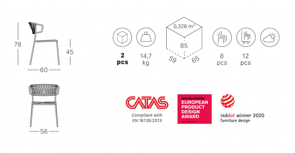 КреслоLisa Filoс корпусом из морского канатаи стальным каркасом от дизайнераMarcello Ziliani. Это обязательный предмет мебели для открытых пространств, неформальный, но хорошо отделанный, выполненный в изысканном сочетании структуры и рамы. Кресло дает легкую летнюю беззаботность барам и ресторанам вдоль моря. Особенности: Каркас выполнен из оцинкованной стальной трубы с полиэстеровым порошковымпокрытием диаметром 16мм. Оплетка изморского каната, доступногов нескольких цветах. Кресла легко штабелируются до 8 шт. для удобного хранения и транспортировки. Данная модель предназначена для использования на летних верандах, террасах, фудкортах, а такжево внутреннем интерьере кафе, ресторанов. Открыть каталог отделоки обивок. Открыть технические характеристики. Обращаем ваше внимание, что каждый цвет каркаса сочетается только с определенными цветами плетения. При выборе цветовой комбинацииориентируйтесь на таблицу с палитрой, где указаны доступные варианты сочетаний.Характеристики