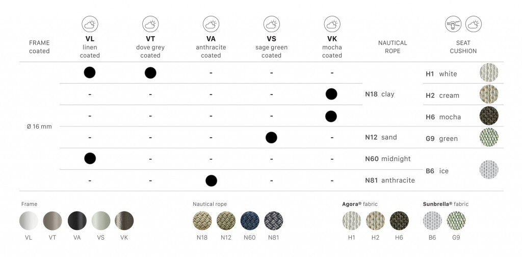 Дизайн:Marcello Ziliani. Коллекция Lisa, которая сегодня пользуется успехом благодаря бесконечному сочетанию материалов и высокой модульности, теперь предлагается в инновационном варианте Lisa Filo Nest из семейства Lisa Filo, разработанном Marcello Ziliani для Scab Design. Обволакивающее и уютное садовое кресло с просторной спинкойотлично подходит в качестве обеденного сиденья вокруг стола или для отдыха в уголке. Что-то новое в чем-то новом, Lisa Filo Nest открывает новые цвета и сочетания. Кресло отражает утонченные тона, которые пронизывали интерьер в 50-х и 60-х годах. Его форма вызывает ощущение успокаивающего тепла, ретро-шарма и воспоминаний о доме. Обволакивающая и удобная спинка и сиденье с мягкой обивкой делают кресло идеальным дополнением к гостиной или компактной обстановке. Легкая, но прочная металлическая конструкция усиливает визуальное ощущение легкости. Lisa Filo Nest - это своеобразное плетеное гнездо, в котором Вы будете чувствовать себя желанным, защищенным и непринужденным. Это настроение, которое интерпретирует новое дополнение к очень успешной семье Lisa Filo, кресло, которое следует своему языку и материалам, используя их в измерении абсолютного комфорта с новыми и оригинальными сочетаниями цветов, отделоки тканей. Особенности: Каркас выполнен из оцинкованной стальной трубы с полиэстеровым порошковымпокрытием диаметром 16мм. Оплетка изморского каната, доступногов нескольких цветах. Сиденье может быть выполнено из погодостойких тканей коллекций Agora или Sunbrella (100% акрил). Данная модель предназначена для использования на летних верандах, террасах, фудкортах, а такжево внутреннем интерьере кафе, ресторанов. Варианты отделки каркаса, плетения и обивки:можно выбрать из палитры. Дополнительно можно приобрести подушку для спинки. Открыть технические характеристики модели. Открыть каталог отделоки обивок. Обращаем ваше внимание, что каждый цвет каркаса сочетается только с определенными цветами плетения и подушек. При выборе цветовой комбинацииориентируйтесь на таблицу с палитрой, где указаны доступные варианты сочетаний. Цена указана за модель с каркасом в цвете мокко (VK), плетением в глиняном цвете (N18) и обивкой сиденья из ткани Agora кремового цвета (H2).Для уточнения всех возможных вариантов материала и цвета данного изделия обращайтесь к нашим менеджерам.Характеристики