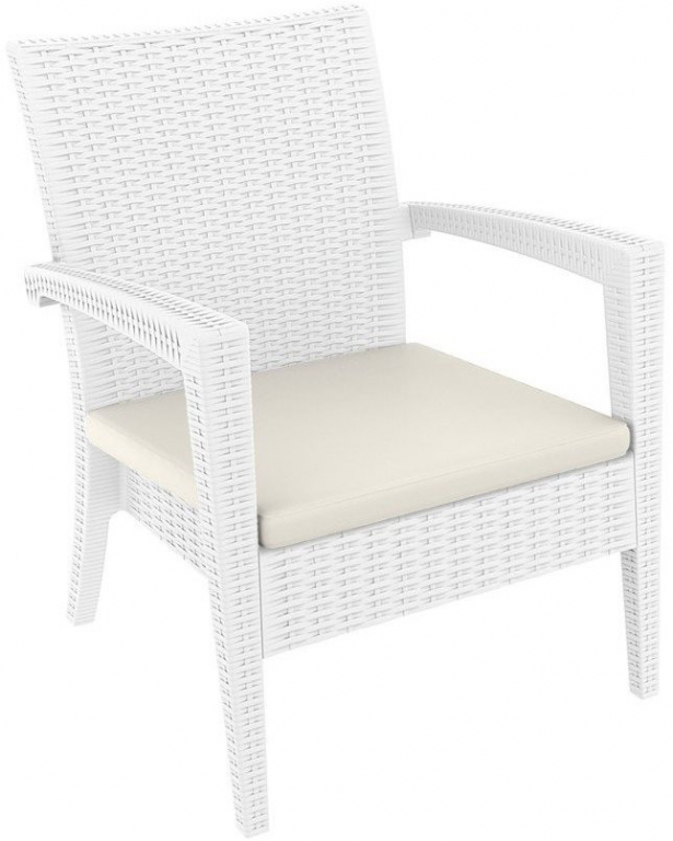 Кресло пластиковое плетеное с подушкой Siesta Contract Miami Lounge Armchair, белый