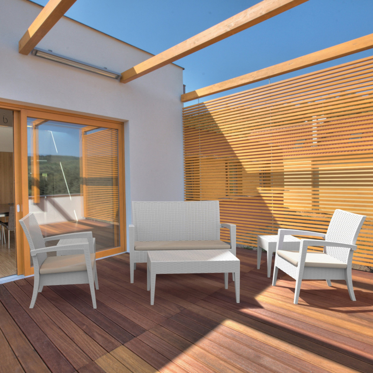 Пластиковое плетеное кресло Miami Lounge изготовлено из прочного погодостойкого пластика, армированного стекловолокном. Пластиковые кресла серии Miami Lounge с имитацией плетения натурального ротанга станут отличным выбором для обстановки фуд-кортов, кафе, ресторанов и баров. Благодаря использованию высококачественных материалов они долгое время не теряют своего привлекательного внешнего вида, даже несмотря на активную эксплуатацию. Благодаря отсутствию металлического каркаса и устойчивости к ультрафиолетовому воздействию плетеные кресла из пластика Miami Lounge можно использовать в том числе и на открытых площадках. Подушка на сиденье толщиной 5 см покрыта полиэстеровой тканью и заканчивается кантом. Обеспечивает дополнительное удобство и комфорт сидящему. Подушка изготовлена из синтетической ткани, произведенной из полиэфирных волокон, хорошо сохраняет форму, устойчива к воздействию тепла и света. Особенности: мебель изготовлена из прочного погодостойкого пластика с имитацией плетения натурального ротанга; не имеет металлического каркаса - не ржавеет, не поддается коррозии; устойчива к ультрафиолету и атмосферным осадкам, выдерживает минусовую температуру до 20 градусов; армирована стекловолокном; может быть разобрана; подходит для использования на открытом воздухе и в помещении. Открыть технические характеристикикресла. Открыть технические характеристики подушки для сиденья. Характеристики упаковки: Кресло: количество в упаковке: 10 шт., размер упаковки: 720х1140х2460 мм, объем упаковки: 2.019 м³, вес упаковки 107,5 кг. Подушка на сиденье: количество в упаковке: 20 шт., размер упаковки: 1110х550х540 мм, объем упаковки: 0.33 м³. Для уточнения всех возможных вариантов материала и цвета данного изделия обращайтесь к нашим менеджерам.Характеристики