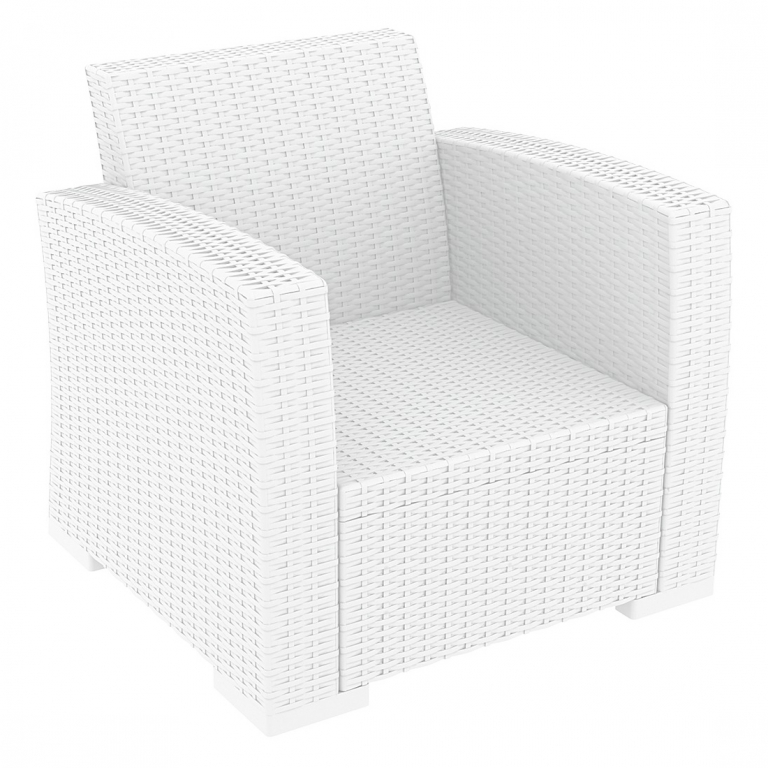 Вы можете купить Кресло пластиковое плетеное с подушками Siesta Contract Monaco Lounge, белый оптом в нашем магазине, предложим цену с оптовой скидкой.