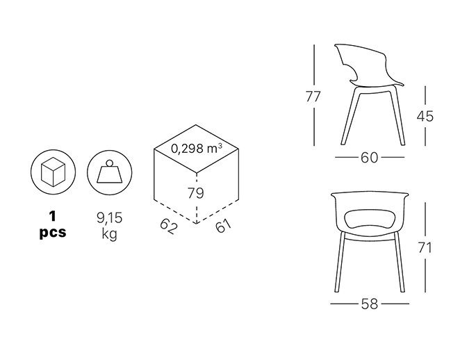 Natural Miss B Pop - это кресло с подлокотниками с эксклюзивным и современным дизайном от дизайнераLuisa Battaglia. Элегантные и тонкие линии NaturalMiss Bукрашены и еще более подчеркнуты в его Pop версии с тканевым вариантом отделки. Эти характеристики идеально совпадают с высоким уровнем комфорта и практичности, которые всегда отличали все продукты бренда Scab Design. Особенности: Каркас выполнен из натурального или окрашенного в цвет венге бука. Корпус выполнен из поликарбоната, а также обит тканью.Доступные варианты обивки:T5 26,T5 27,T6 28,T3 25,M2 09. Удобное, обволакивающее и мягкое креслорекомендовано для обстановки кухонь, обеденных зон, современных жилых комнат дома, а также для более интенсивного использования в ресторанах, пиццерияхили барах. Данная модель предназначена для использования в интерьере. Открыть каталог отделоки обивок. Открыть технические характеристики.Характеристики