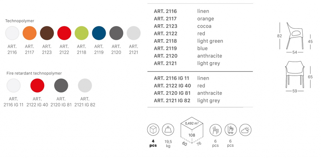 Пластиковое кресло Ola с корпусом из технополимера от дизайнеровMark Robson и Luisa Battaglia. Особенности: Ножки выполнены из анодированного алюминия диаметром 25 мм. Корпус выполнениз технополимера. Возможность штабелирования до 6 шт. обеспечивает компактность и мобильность стульев. Данная модель предназначенадля использования на летних площадках, террасах, фудкортах, а также во внутреннем интерьере кафе, ресторанов. Открыть технические характеристики.Характеристики