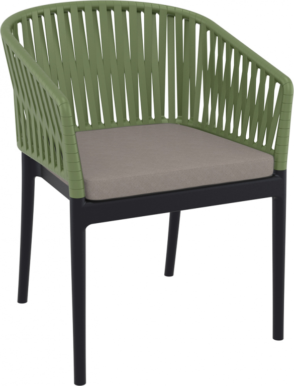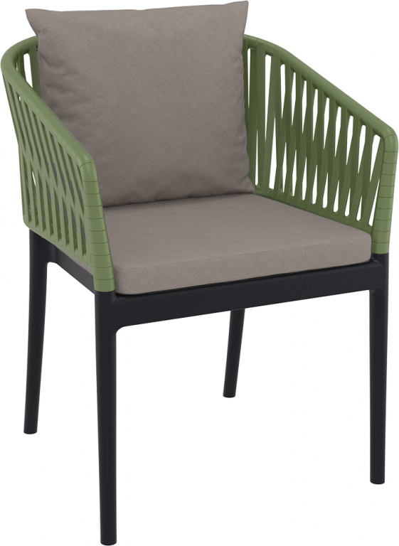 Кресло пластиковое с подушками Siesta Contract Portofino, черный, оливковый, светло-коричневый