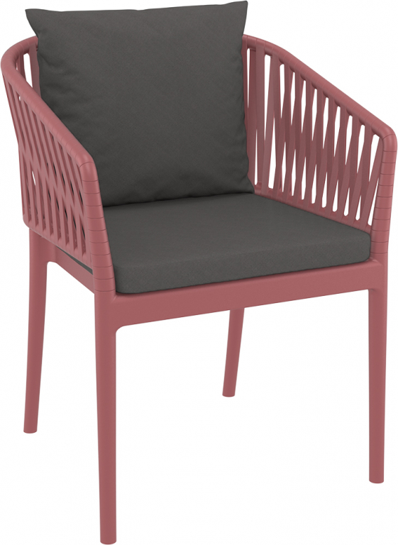 Кресло пластиковое с подушками Siesta Contract Portofino, марсала, темно-серый